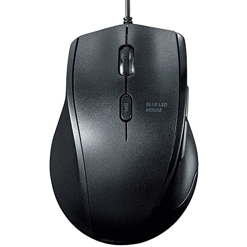 SANWA SUPPLY Silent Wired Blue LED Mouse (For Left Hand) 5 Buttons, Back/Forward Buttons, 5 Buttons, 2400dpi (4 Levels Switchable), Medium Size MA-BL1