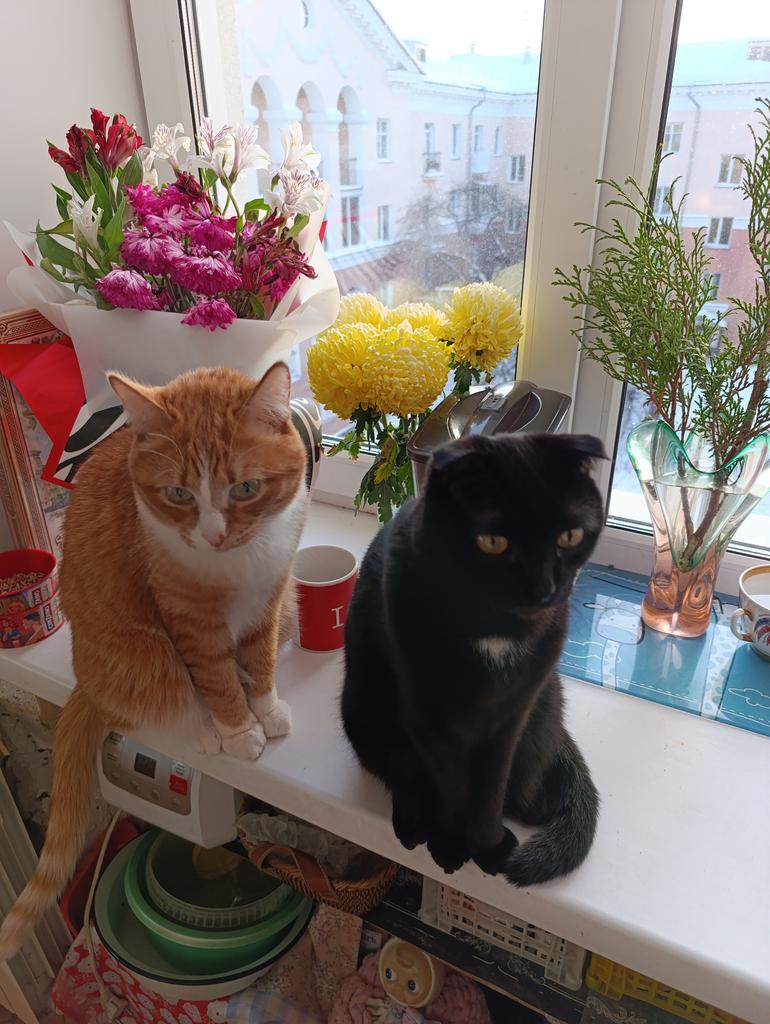 The cats are happy, rubbing with pleasure, thank you
