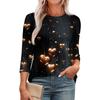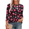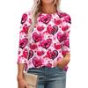 Women's Fashionable Round Neck 3/4 Sleeve Printed Casual Basic Pleated Pullover T-shirt Top
