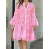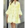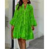 HNXC Women's Fashion Autumn Winter Solid Color Print Long Sleeve V-Neck Casual Dresses