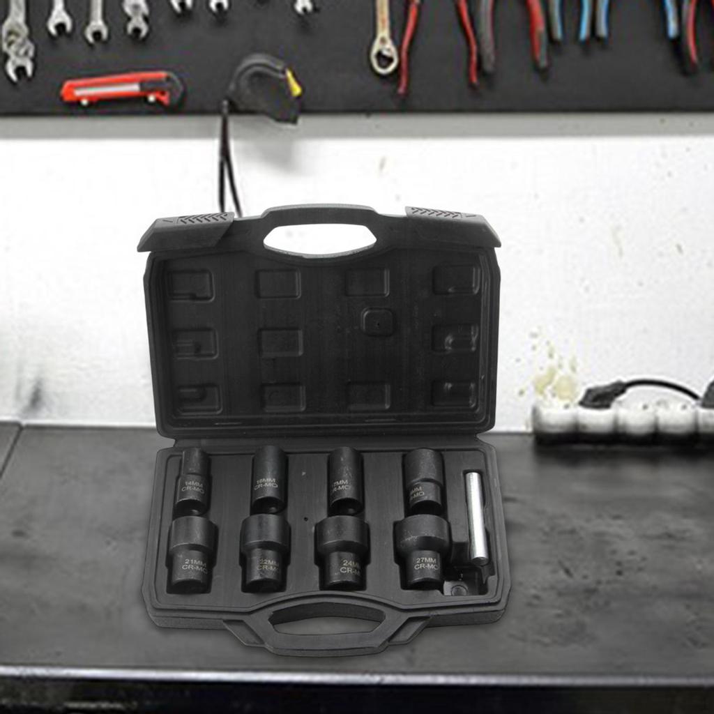- 【Efficiency】: Nut extractor comes with 8 different sizes of sockets and 1 center punch bar to meet your different needs and improve work efficiency (Metric 14 mm 16 mm 17 mm 19 mm 21 mm 22 mm 24 mm 27 mm, 1/2 inch)