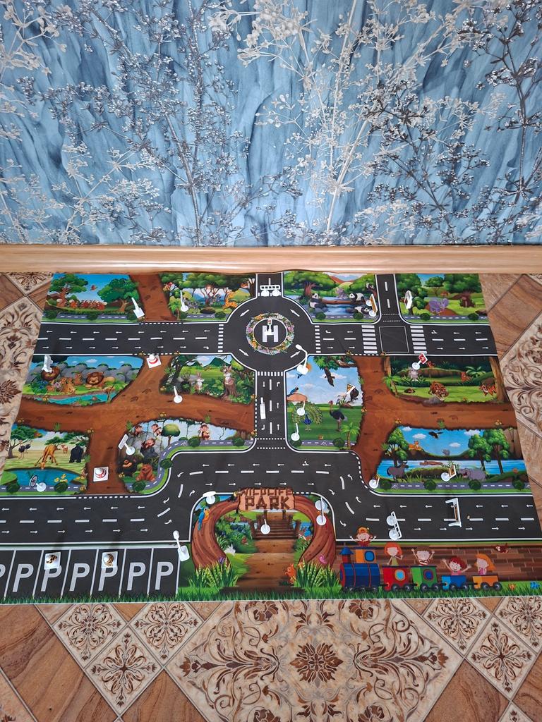 It's convenient to play with the cars on the mat. It's just the right size.