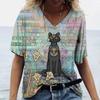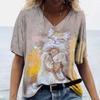 Summer Purple Series Kitten Female Commuter Elegant V-neck Short Sleeve T-Shirts Women’s