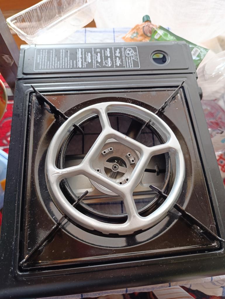 I didn't expect the gas stove stand to be so big. However, even a standard enamel mug won't fall through the central hole, so for small cookware, the stand is just right. There are 2 pieces in the set.
