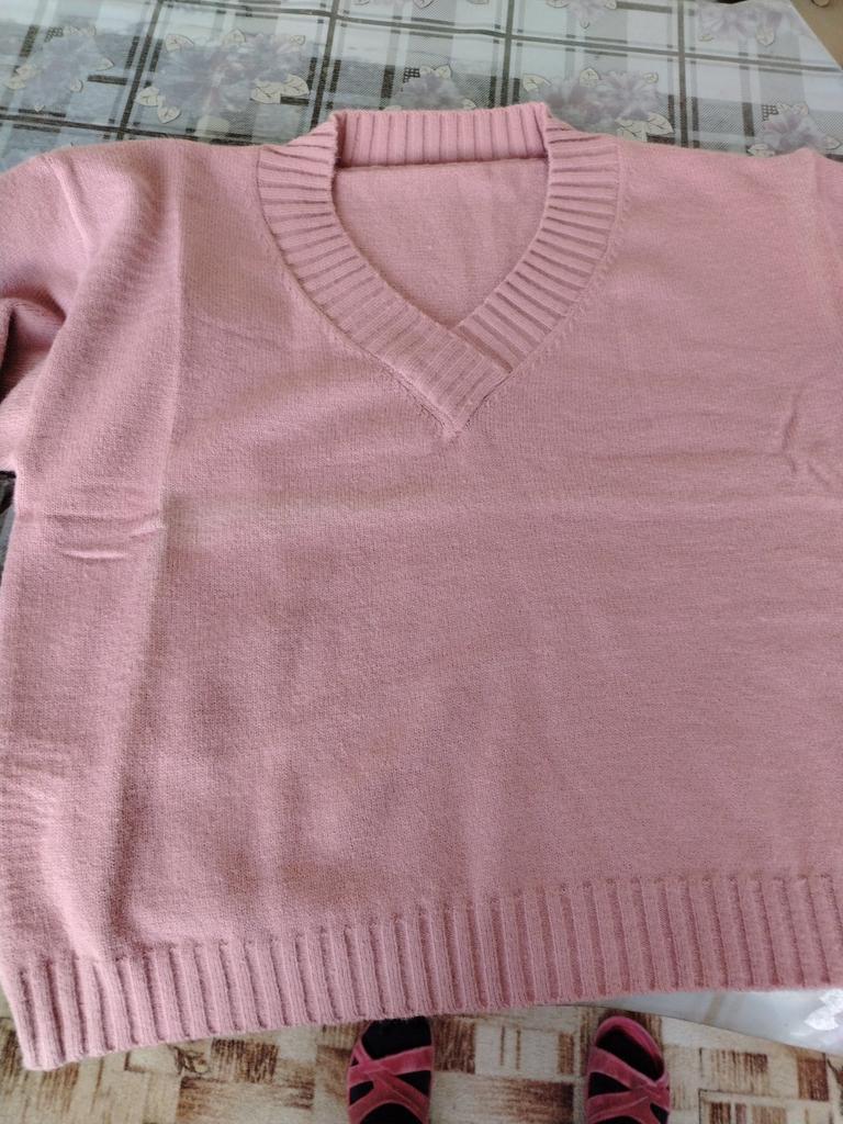 HNXC Women's Fashion Casual Solid Color Print Autumn Winter Long Sleeve V-Neck Loose Sweaters