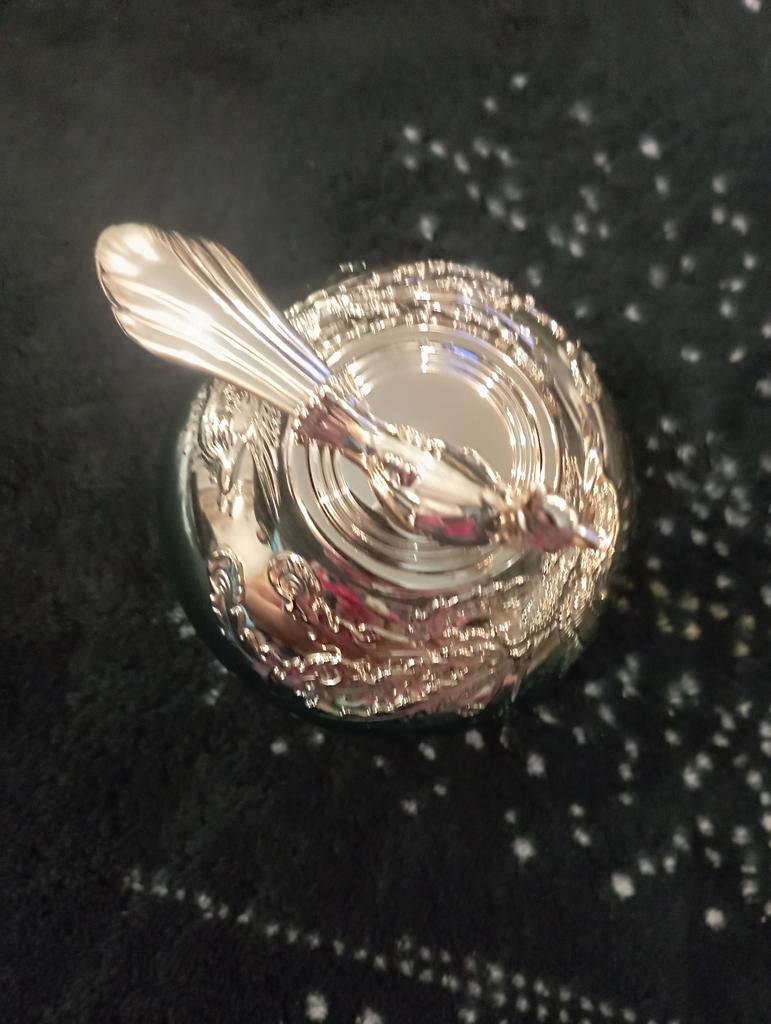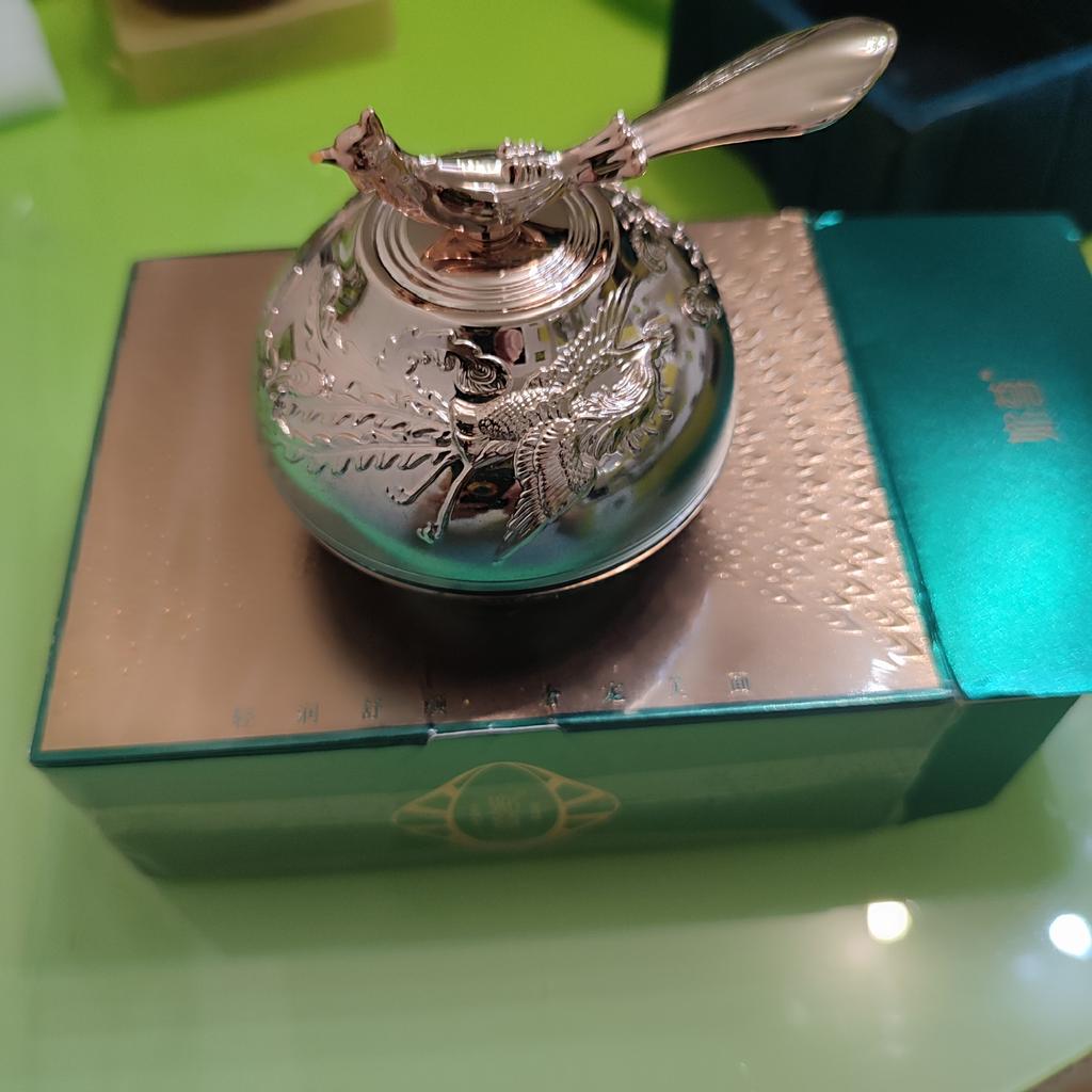 The jar is luxurious, the spatula in the shape of a bird too. But the box was simply all crumpled. And it was taken as a gift(