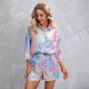 Plus Size Women's New Printed Three Quarter Sleeve Shorts Casual Suit