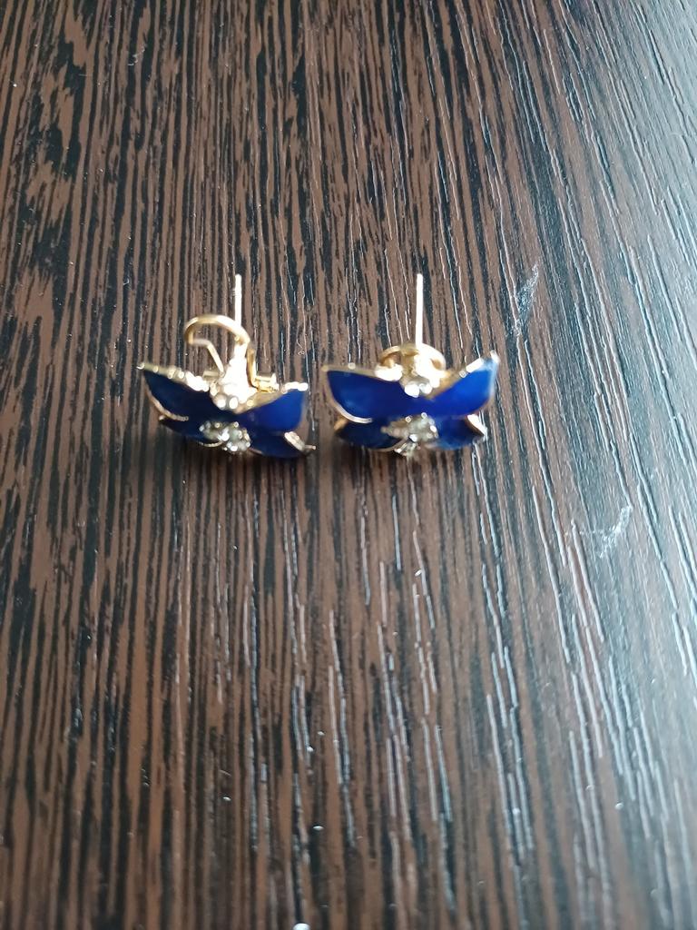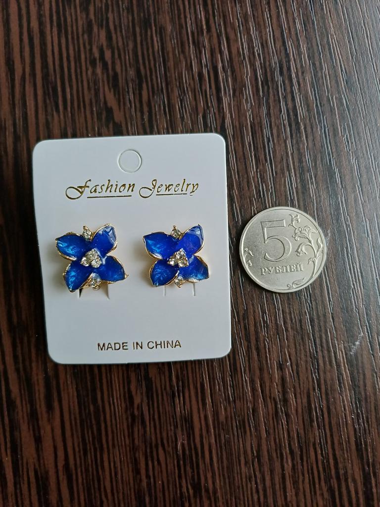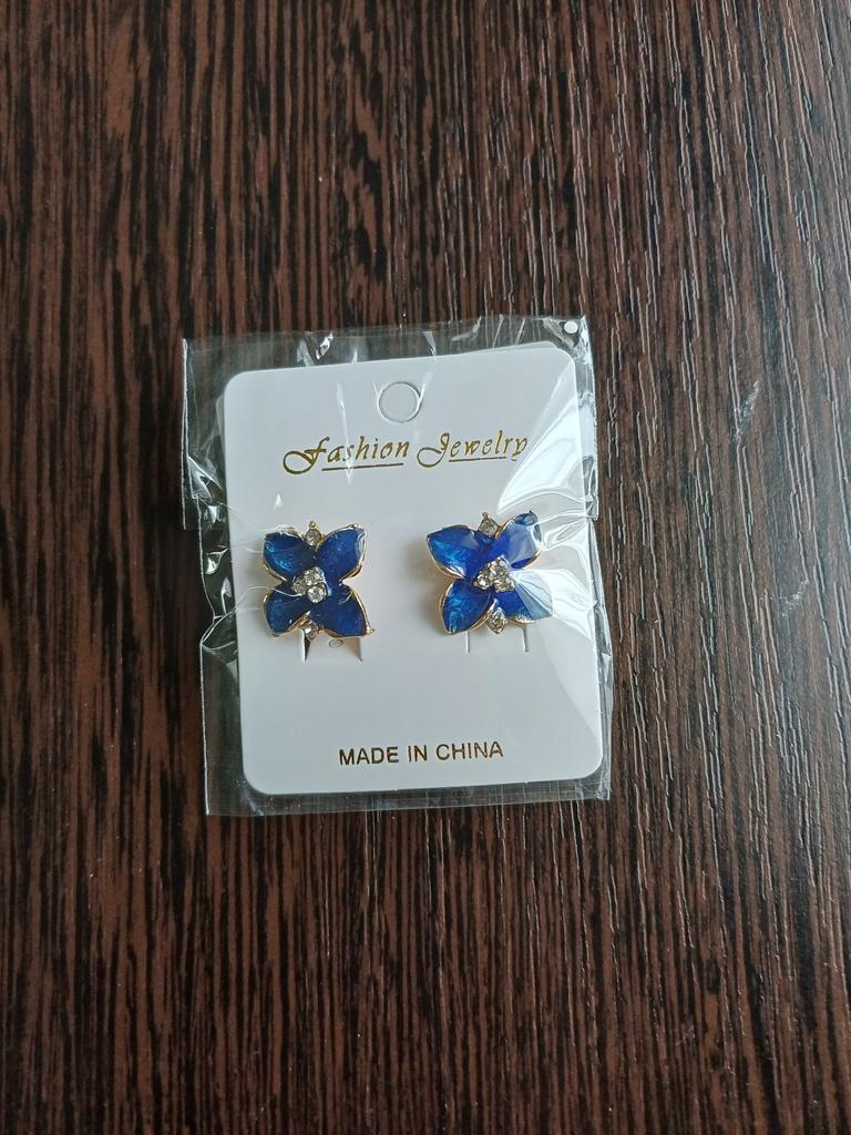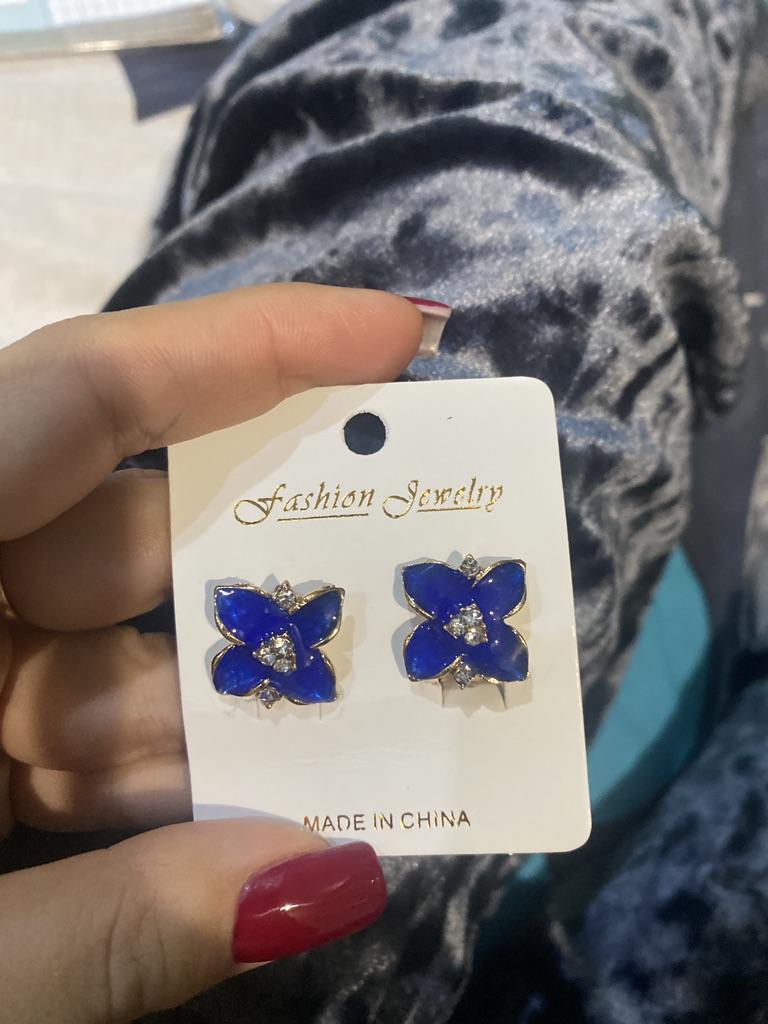 Fashion Simple Round Crystal Blue Flower Alloy Earrings Female Jewelry Party Gift