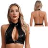Womens Backless Cutout Front Camisole Vest Tops Halter Night Club Wear Lingerie Leather Crop Top Latex Bustier