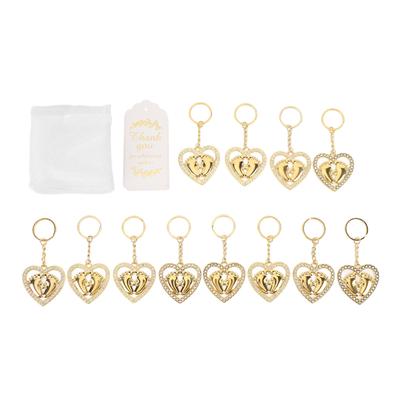 12 Pcs Baby Shower Favors Heart Shaped Keychain Zinc Alloy Gold Baby Shower Favors Keyring with Orga