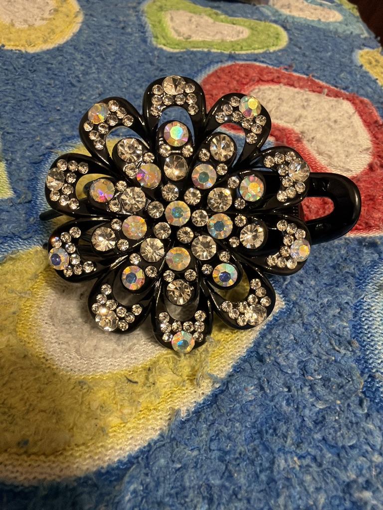 Flower Hair Clip Crystal Rhinestone- Fancy Ponytail Barrette Elegant Hair Clip for Women