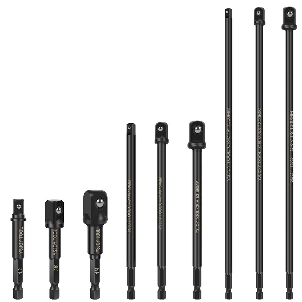 9Pcs Hex Shank Drill Socket Adapter Set Multipurpose 1/4" 3/8" 1/2" Square Socket Drill Bits Extension Rod for Impact Driver