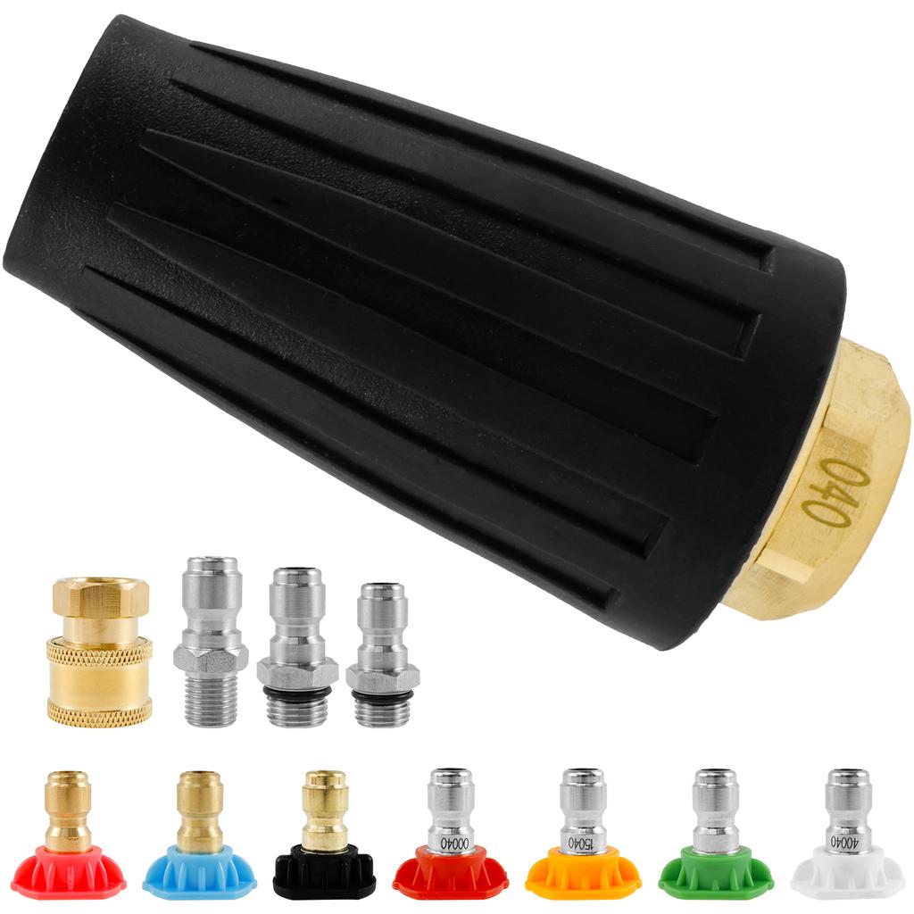 Pressure Washer Tip Turbine Nozzle with 1/4inch 3/8inch Quick Connector Brass Rotating Turbine Nozzle Set with 7 Spray Nozzle