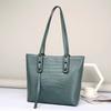 Genuine Leather Tote Bag Women's Korean Version Simple Crocodile Print Top Layer Cowhide Handbag Shoulder Bag