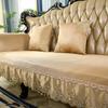 Summer Cool Ice Silk Fabric Slipcover European Luxury Lace Edge Sofa Cover Non-slip Living Room Sofa Protection Seat Cushion