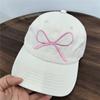 Chic Denim Baseball Cap with Bowknot & Embroidered Lettering - Adjustable, Sun-Protective Dad Hat for Women