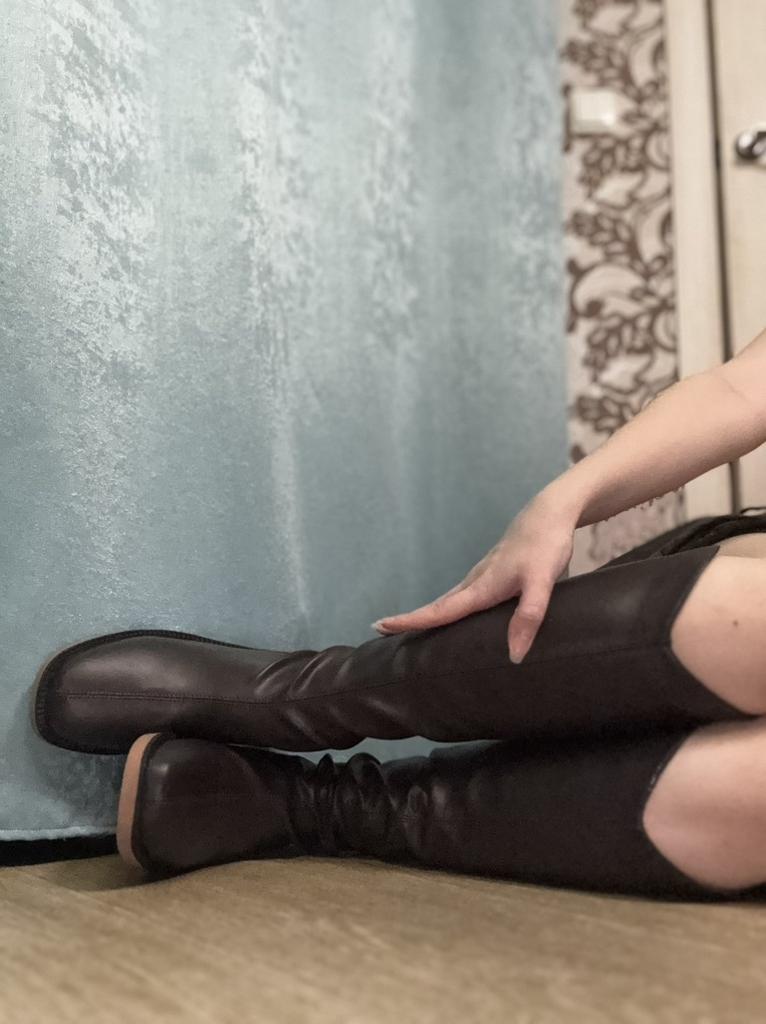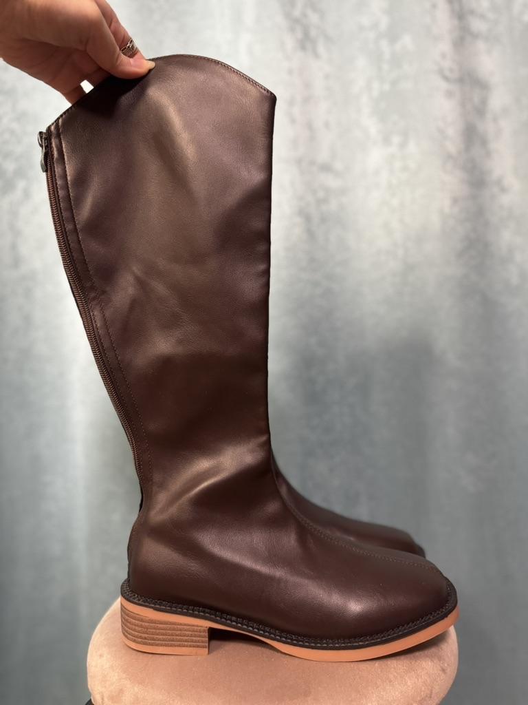 Women Knee-high BootsLeather Natural Leather Ladies Bootie Autumn and Winter Velvet Western Boots Goth Shoes Long Botas