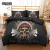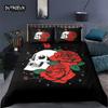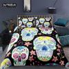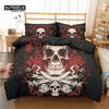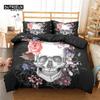 Red Rose Skull Floral Bedding Set Skeleton Flowers Green Leaves Print Duvet Cover Horror Theme Comforter Cover With Pillowcases