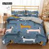 Cartoon Dachshund Bedding Set Cute Sausage Dog Duvet Cover Set Pet Puppy Printed Comforter Cover Animal Polyester Quilt Cover