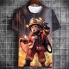 New Firefighter Cartoon Animation Pattern Summer Printed Boys' T-shirt O-neck Comfortable Casual Fashion Short Sleeve
