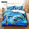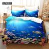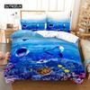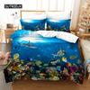 Ocean Duvet Cover Set Polyester Underwater World Clownfish Shark Quilt Cover Sea Animal Theme Double Queen King Size Bedding Set