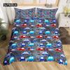 Fire Truck Duvet Cover Set Twin Size Red Firemen Car Vehicle Bedding Set Fire Engine Pattern for Boys Tire Printing Quilt Cover