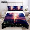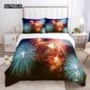 Firework Duvet Cover Set Queen Size Colourful Fires Bedding Set Microfiber Celebrate Merry Christmas Theme Soft Comforter Cover
