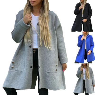 Women's Loose Casual Solid Color Single Breasted Hooded Jacket Woolen Coat Coat Coat