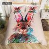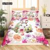 Easter Rabbit Duvet Cover Easter Bedding Set Floral Cute Rabbit Pet Queen Size Kawaii Presents Easter Day Gifts for Toddlers