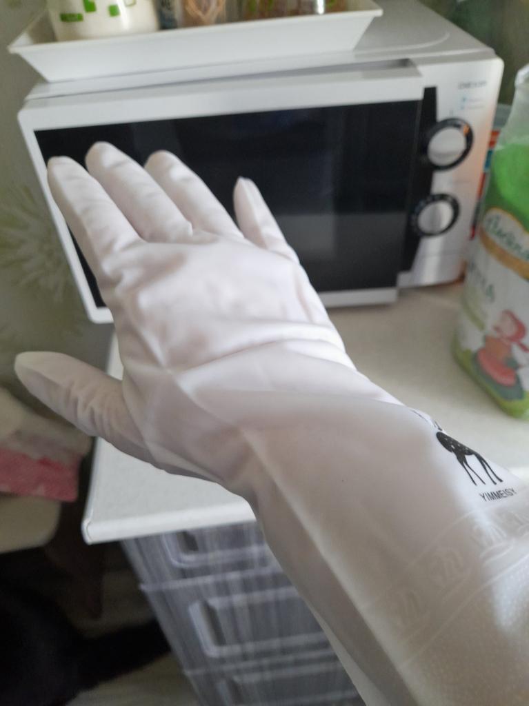 Excellent gloves, comfortable for washing dishes and other water-related tasks. Size is accurate. Convenient length of the gloves.