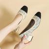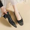 2024 Autumn Women High Heels Fashion Knitted Fabric Square Toe Thick Heel Shallow Mouth Shoes Breathable Anti-skid Ladies Pumps