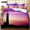 Lighthouse Duvet Cover Ocean Comforter Cover Nautical Quilt Cover Sunset Nature Double Queen King Size Polyester Bedding Set