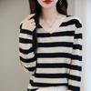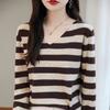Autumn and Winter Women's Striped Long-sleeved V-neck Bottoming Pullover Loose Casual Knitwear