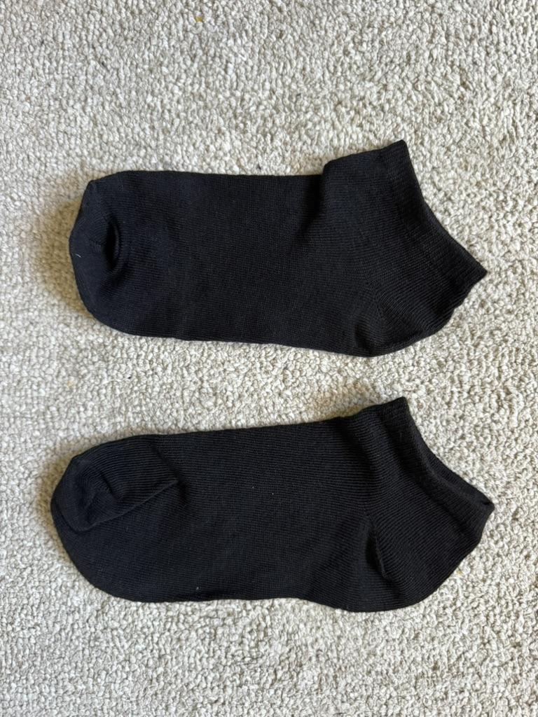 Black ankle socks The socks are soft and of excellent quality. No strings pulled. The socks do not tighten at the ankles and above all they do not roll up under the foot when worn (I hate when socks have this effect) I use them both myself who wears the 40 eur and my son who wears the 43 eur. The socks arrived in Italy in 3 weeks, perfectly packaged. I am fully satisfied with my purchase and recommend them.