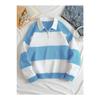 Unisex Green Striped Oversize Polo Neck Half Zipper Sweatshirt