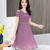 Women's Summer Dress Slim Solid Color V-neck Chiffon Long Skirt