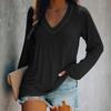 YYFS Women's Fashion Casual Spring Fall Solid Color Print Long Sleeve V-Neck Blouses & Shirts