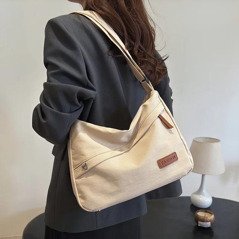 Versatile Women's Crossbody Bags Zipper Solid Nylon Large Capacity Interior Pocket Shoulder Bag