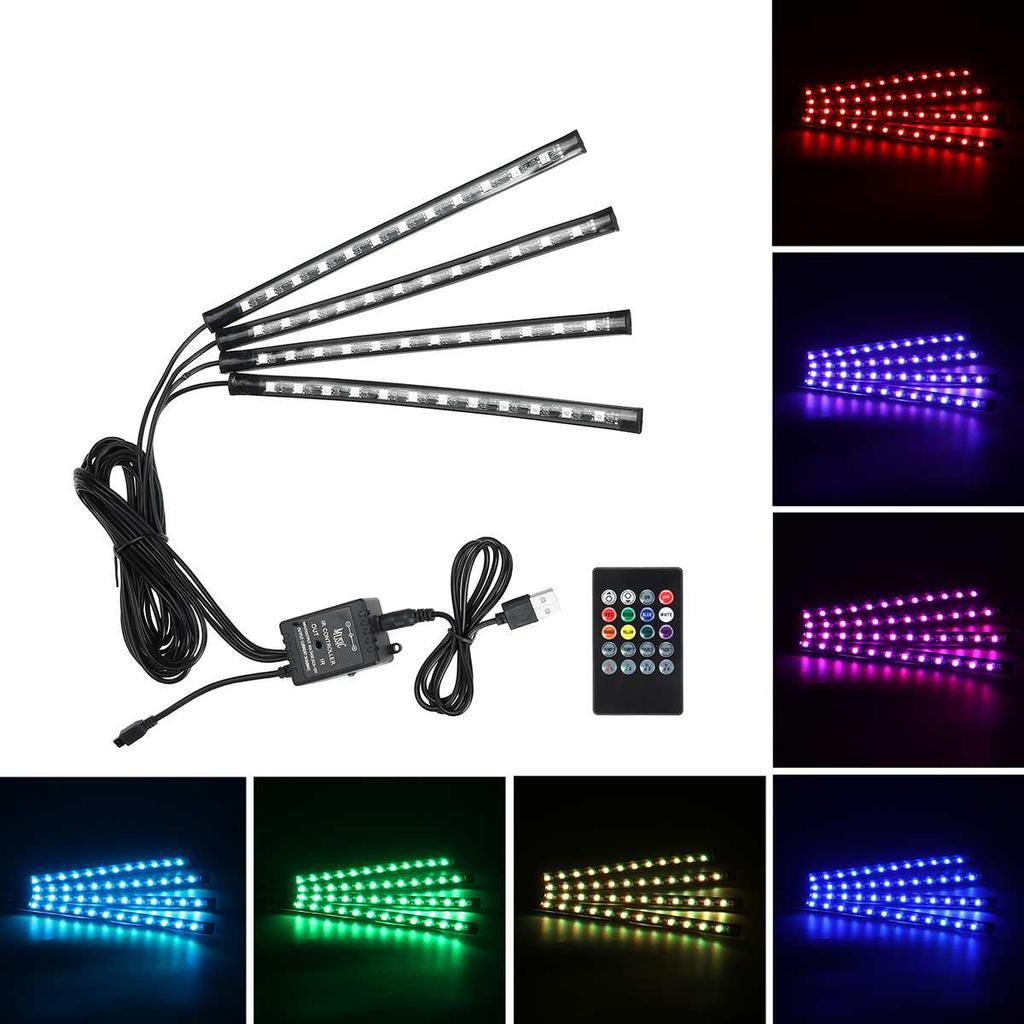 48LED Car LED Interior Ambient Foot Strip Light Backlight Remote Control Auto RGB