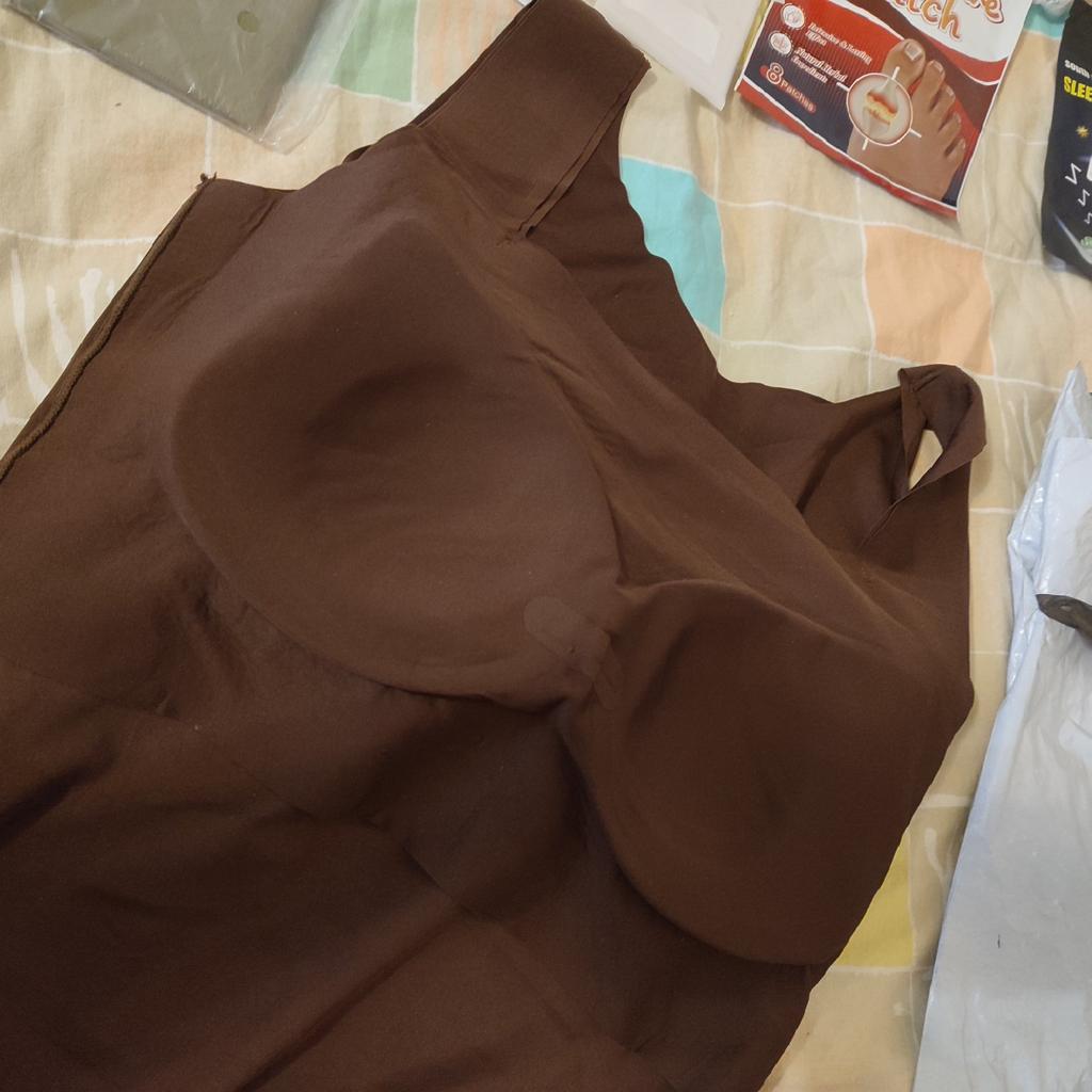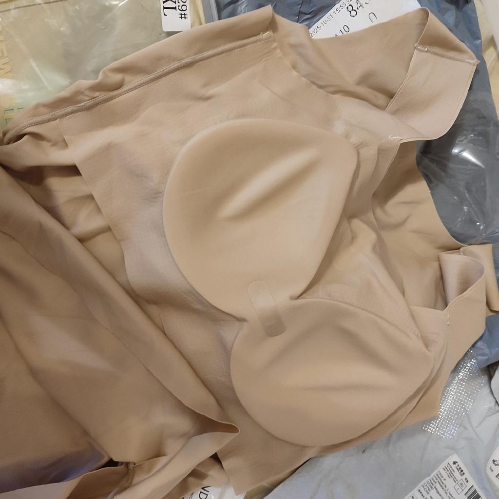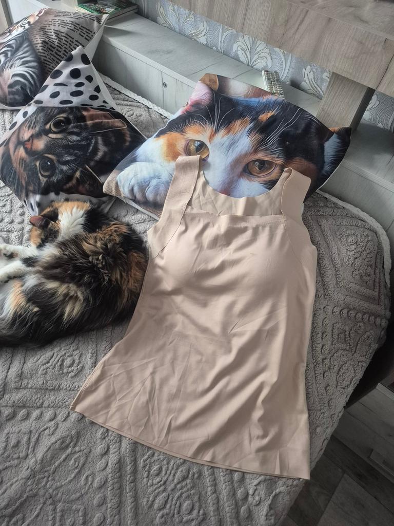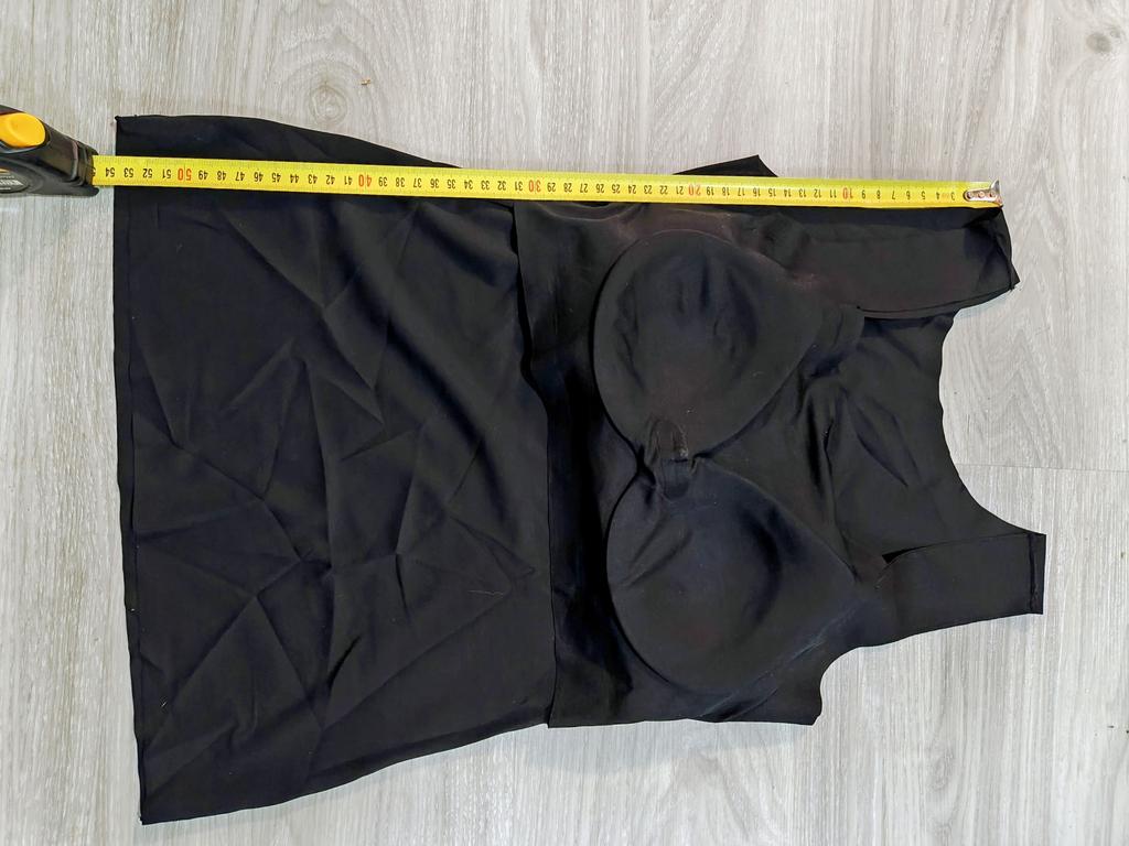 The tank top is excellent, the size was right this time, only there is an unpleasant smell, but otherwise it is not felt on the body, under tight-fitting clothes you can without a bra, it supports the breasts more or less