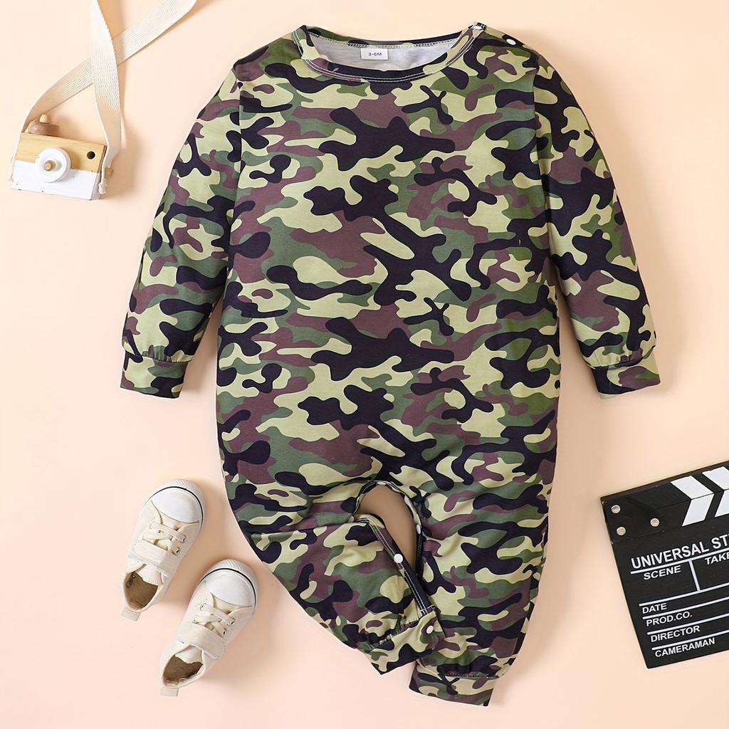 1-24 Months Baby Boy Camouflage Full Print Romper Long Sleeve Onesie Jumpsuit