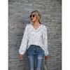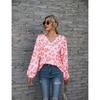 Plus Size Leopard Print V Neck Off The Shoulder Long Sleeved Top for Women
