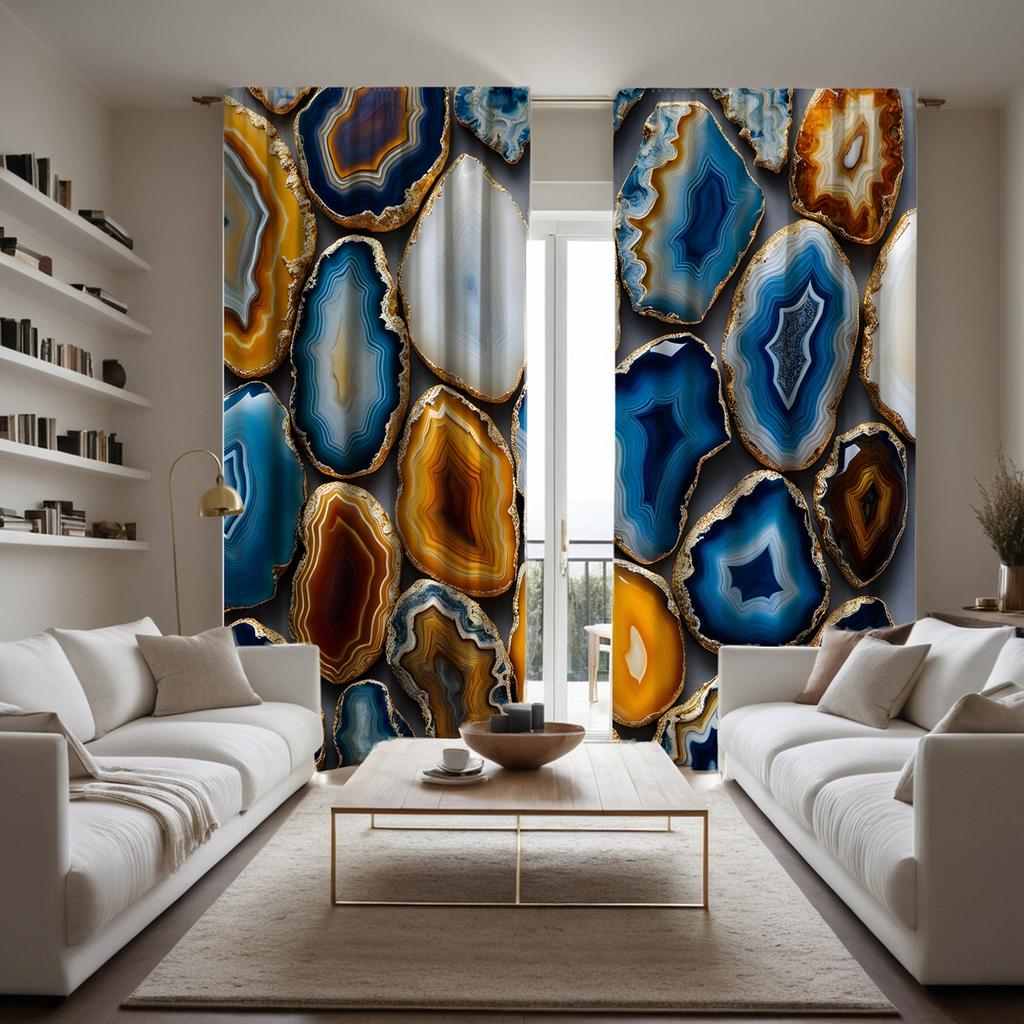 2pcs HD Decorative Curtain Nordic Light Luxury Agate Texture Pattern Blue Digital Printed Curtain Home Decoration Style Decor