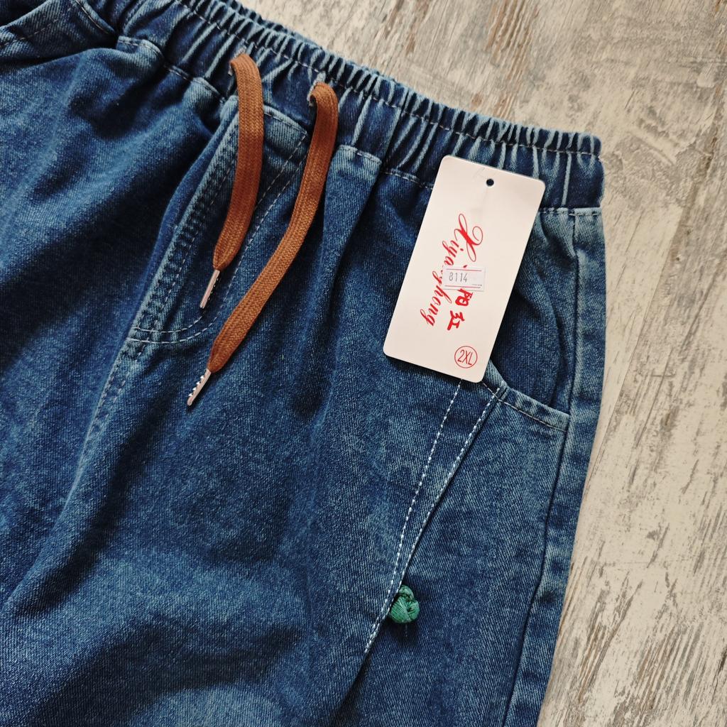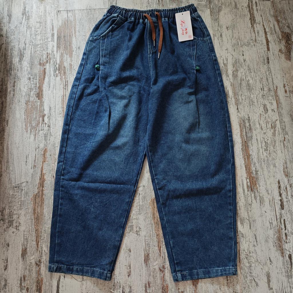 Spring Casual Jeans Women Elastic Waist Wash Blue Pan Buckle Loose Dad Harlan Denim Pants