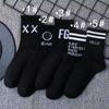 Zhuji Men's Autumn/Winter Mid-Tube Black & White Trendy Sports Socks - Breathable, Sweat-Absorbent, Long Tube for Basketball