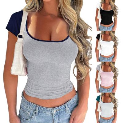 Women's Short Sleeve T-shirt Square Neck Navel T-shirt Sexy Slim Street Style Short-sleeved Female