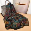 Large Imitation Silk Flower Print Chinese Style Scarf Vintage Red Green Color Block Windproof Breathable Head Wraps Shawl for Women