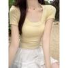 White U-neck Off-shoulder Short Top for Women In Summer, Pure Lusty Style, Exposed Navel, High Waist, Slim Hot Girl, Short-sleeved T-shirt