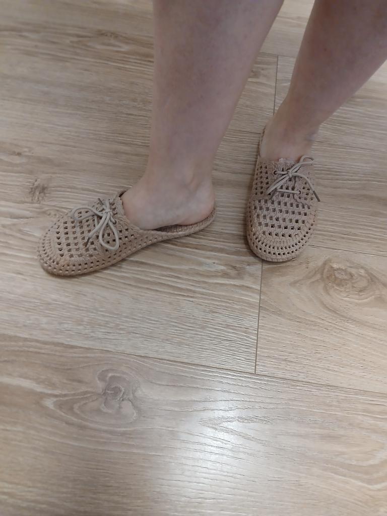 I bought the slippers more because of the lacing, I thought that with the help of the laces it would be possible to adjust the instep, but the lacing is fake, and the smell from the slippers is very terrible, to the point of nausea, very disappointed