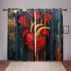 2 Piece Vintage Rose Love Heart Curtains Valentine's Day Red Floral Pattern Living Room Bedroom Kitchen Balcony Decor Curtains